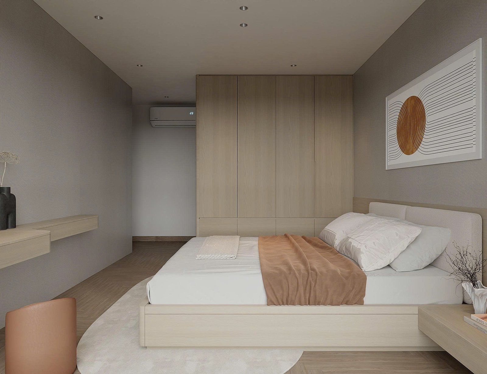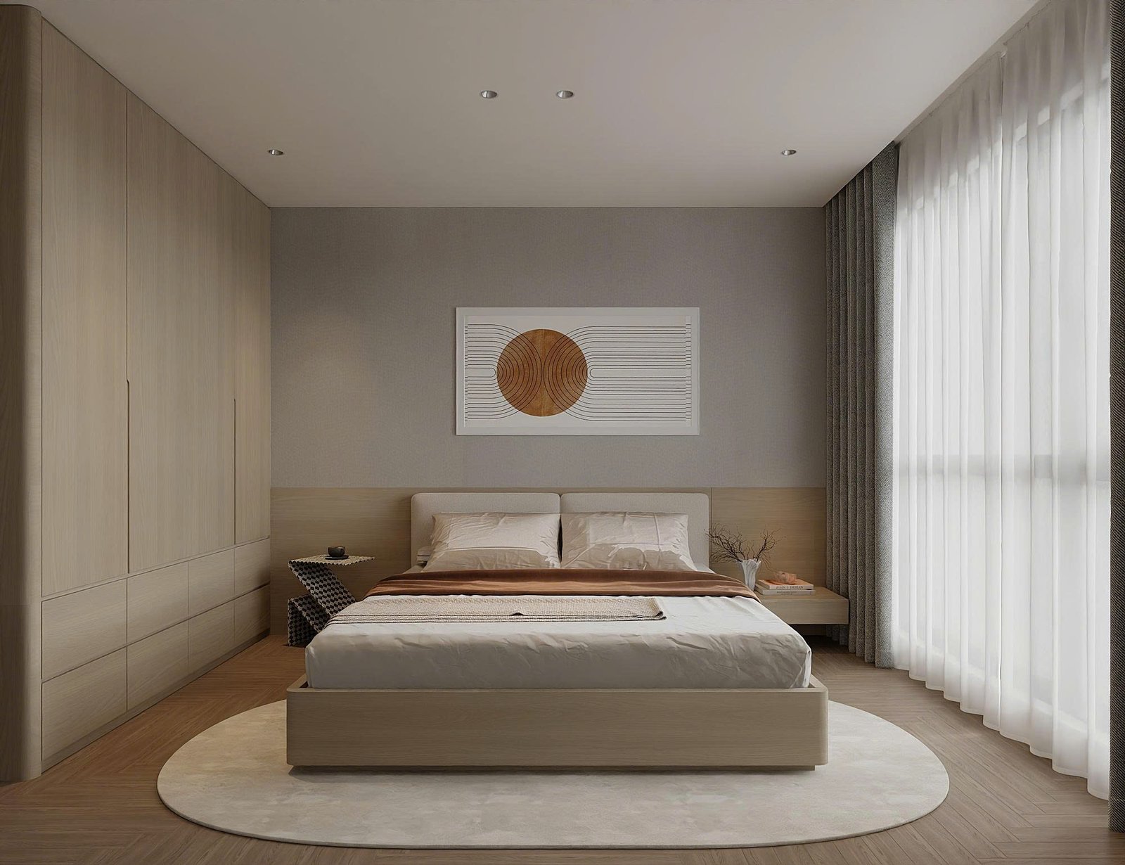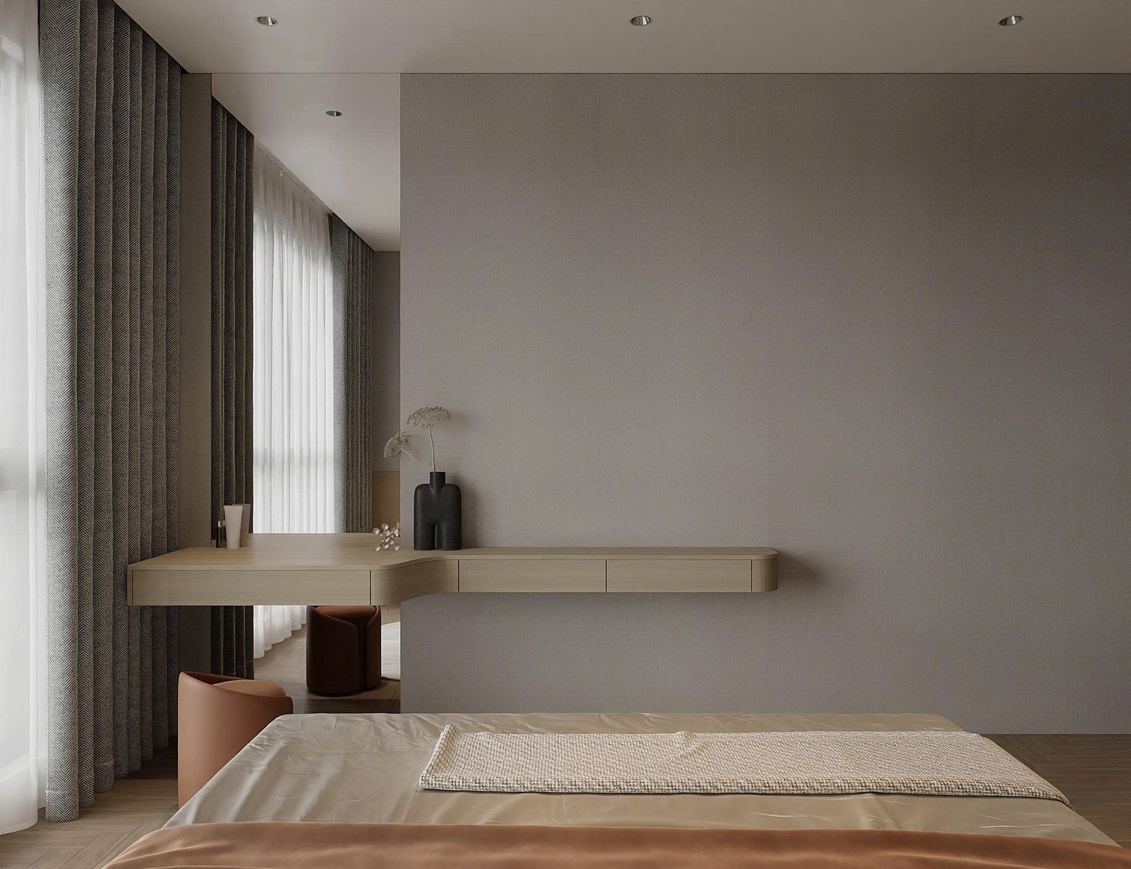 Bằng cách sử dụng những dải màu trung tính dịu mắt, kết hợp cùng chất liệu vải nỉ, gỗ tự nhiên và ánh sáng hắt dịu nhẹ, mỗi phòng ngủ tại đây đều mang hơi thở của sự tĩnh lặng và an yên. Sự tinh tế không đến từ những chi tiết rườm rà, mà hiện hữu trong cách sắp đặt lớp lang của ánh sáng, sự mềm mại của những đường cong nội thất và cảm giác thư thái khi chạm tay vào từng bề mặt vật liệu cao cấp. Tất cả hòa quyện để tạo nên một chốn riêng tư đúng nghĩa—nơi gia chủ được thực sự là chính mình trong sự nâng niu tuyệt đối.