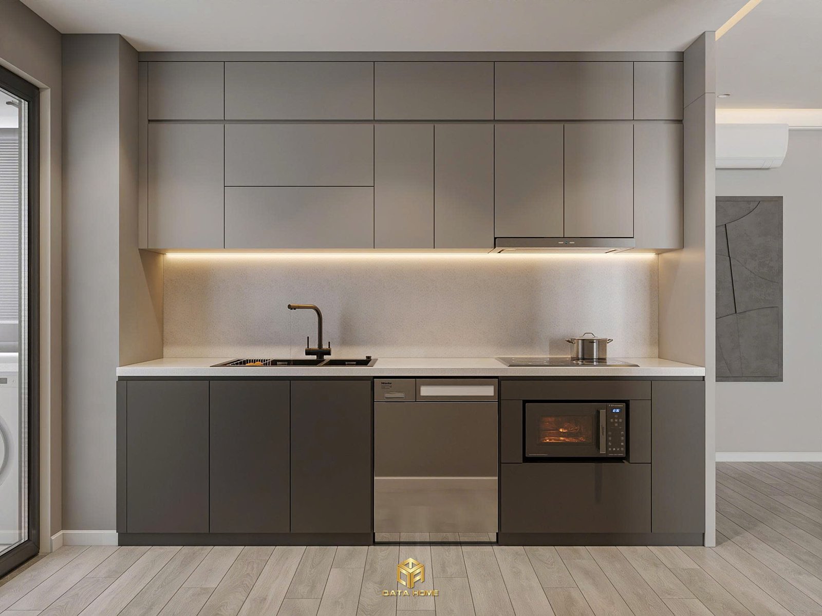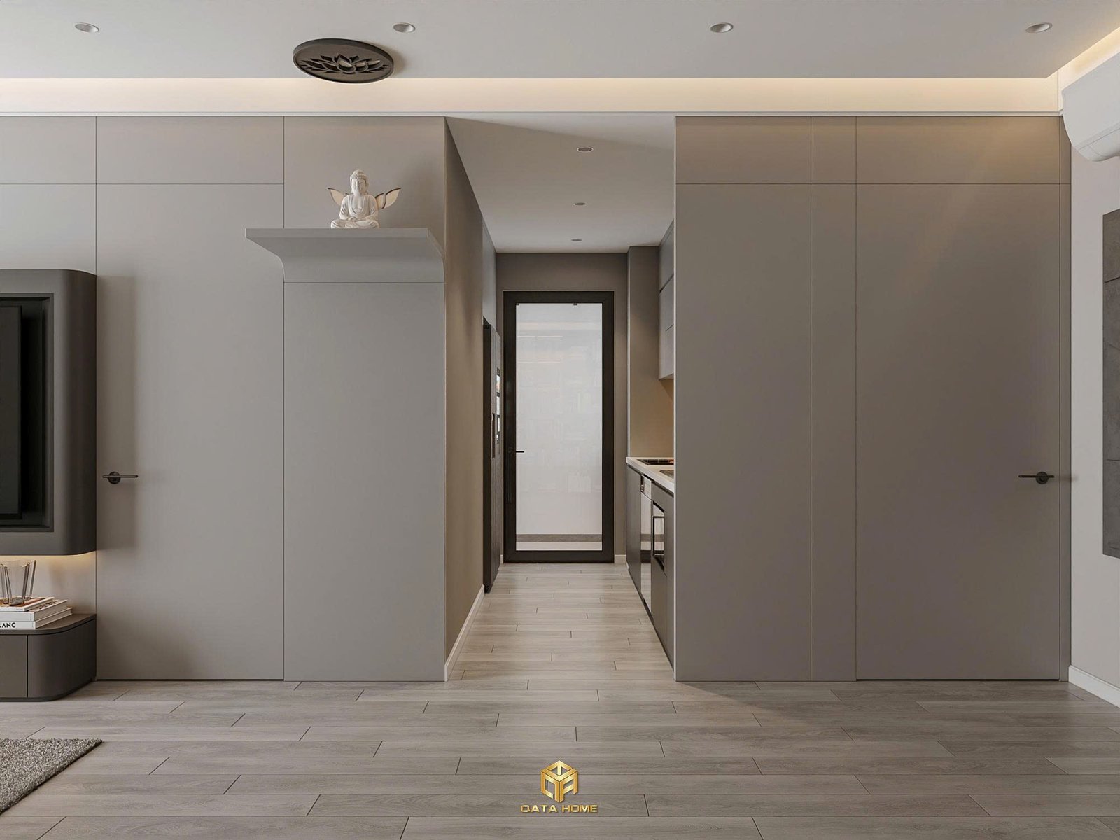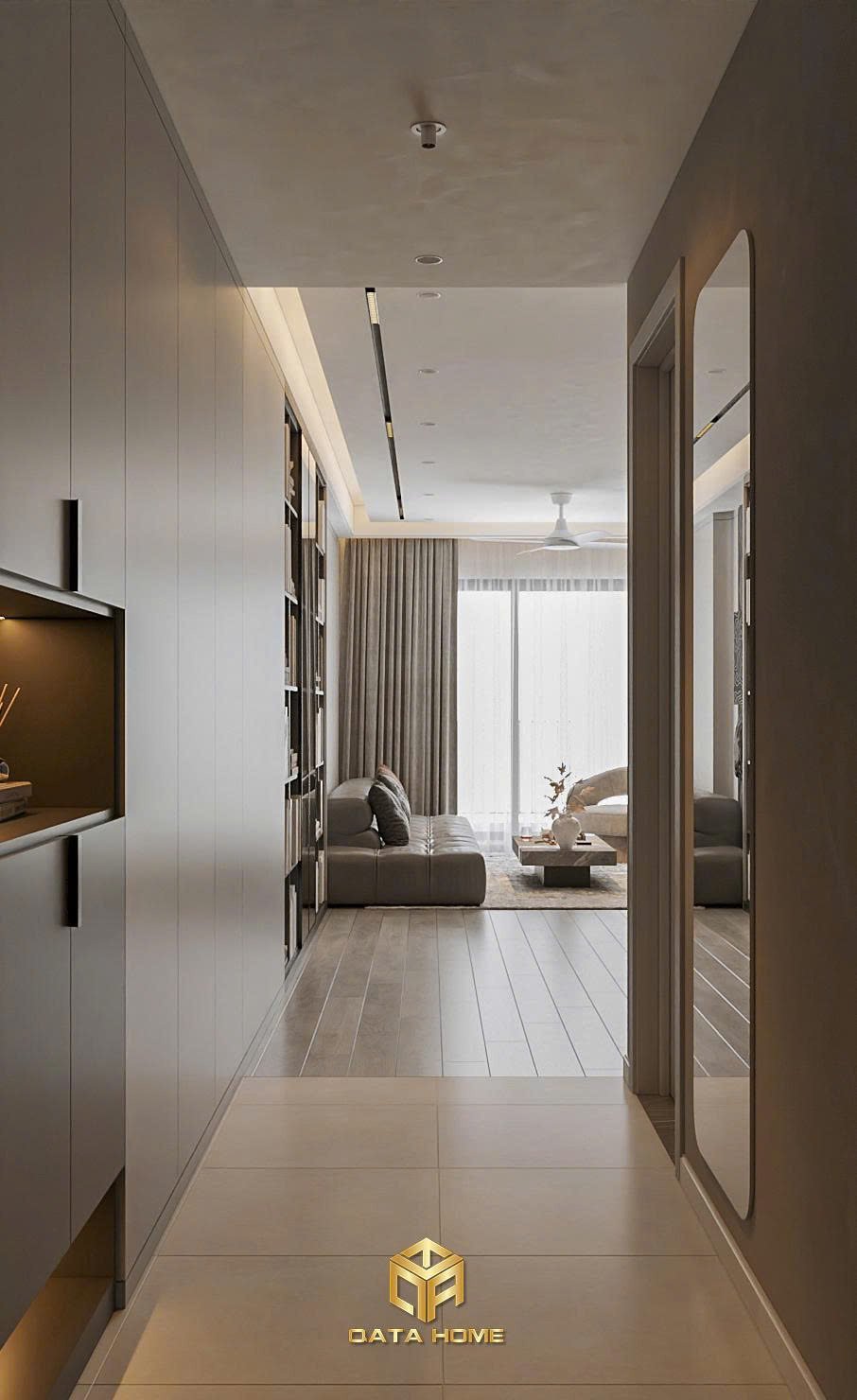 Mọi chi tiết đều được Qata Home thi công tỉ mỉ, đảm bảo thiết kế nội thất chung cư hiện đại không chỉ đẹp mà còn thực tế trong sử dụng hàng ngày.