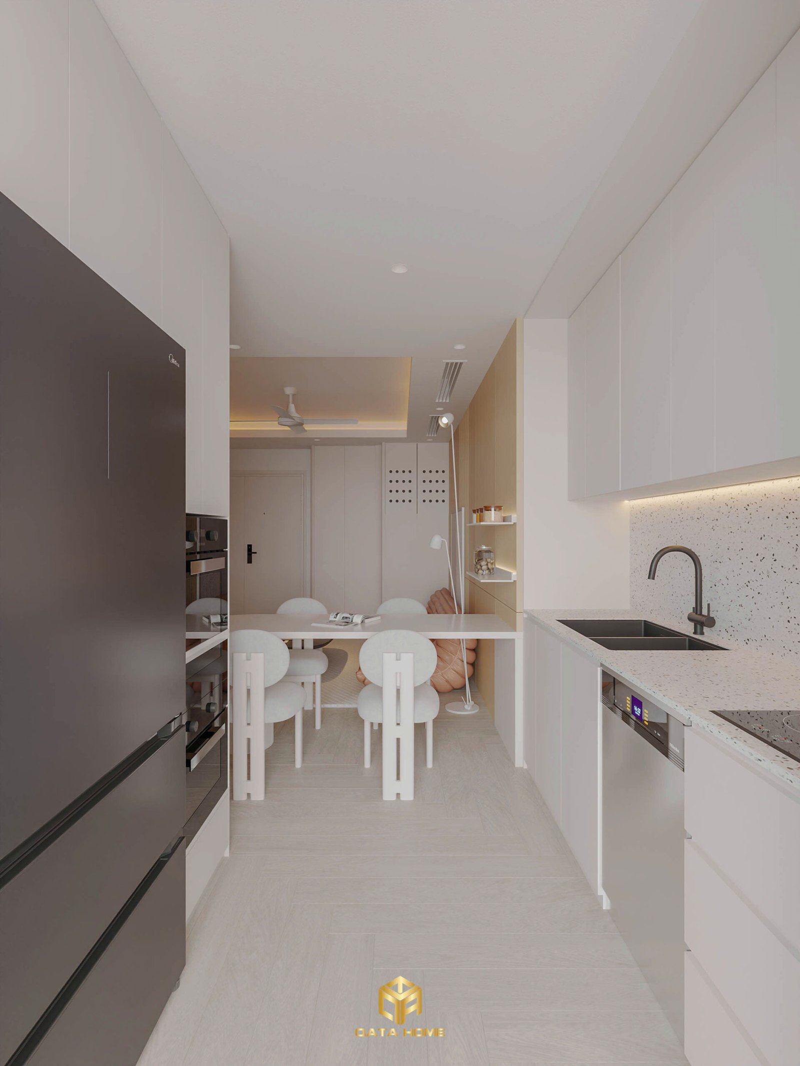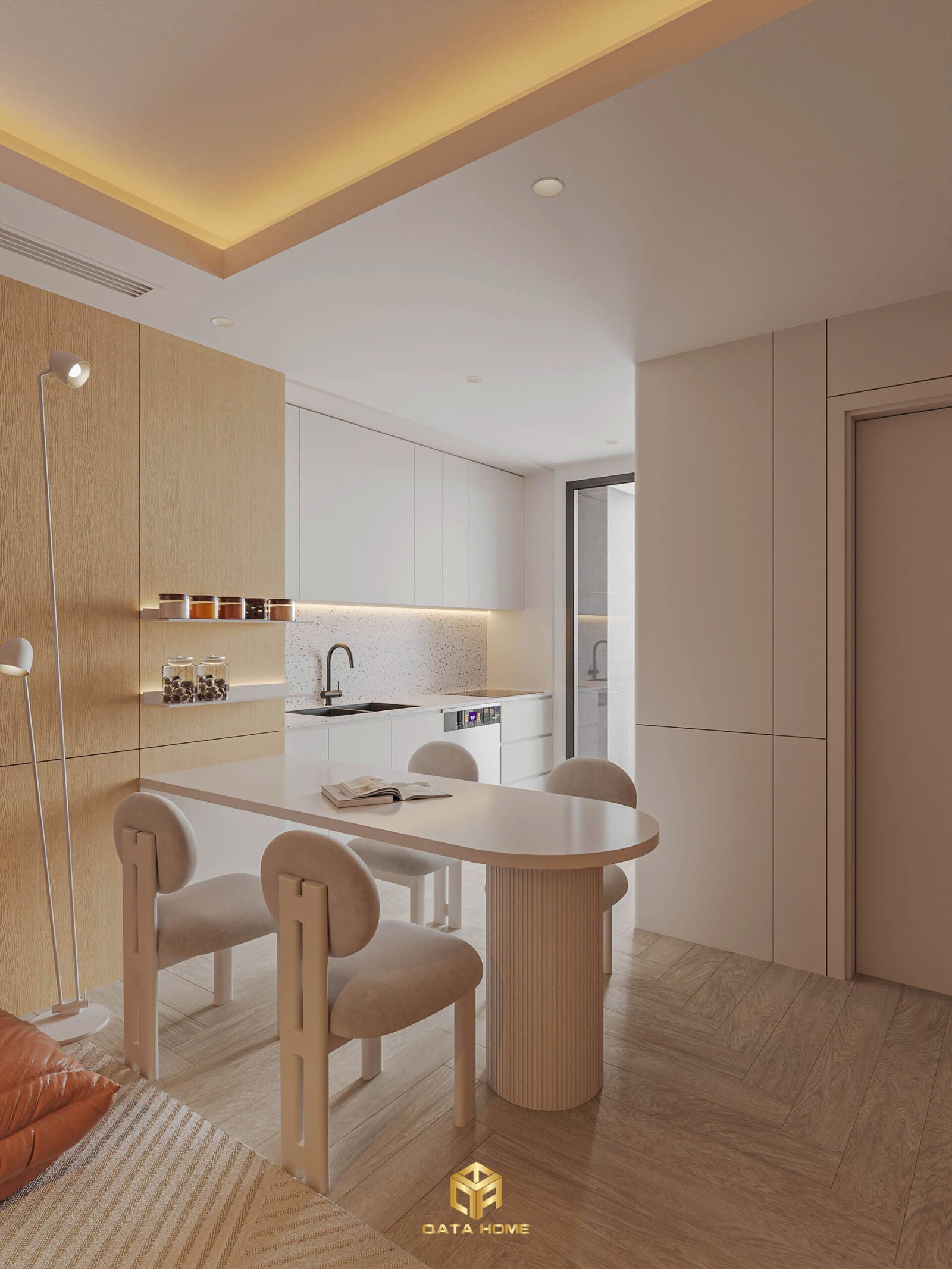 Không gian mở, ánh sáng dịu nhẹ, bảng màu trung tính kết hợp cùng vật liệu gỗ ấm áp đã tạo nên một tổng thể vừa hiện đại vừa gần gũi. Đây không chỉ là một căn hộ, mà là một trải nghiệm sống.