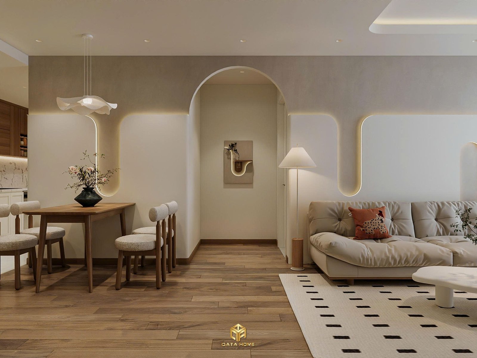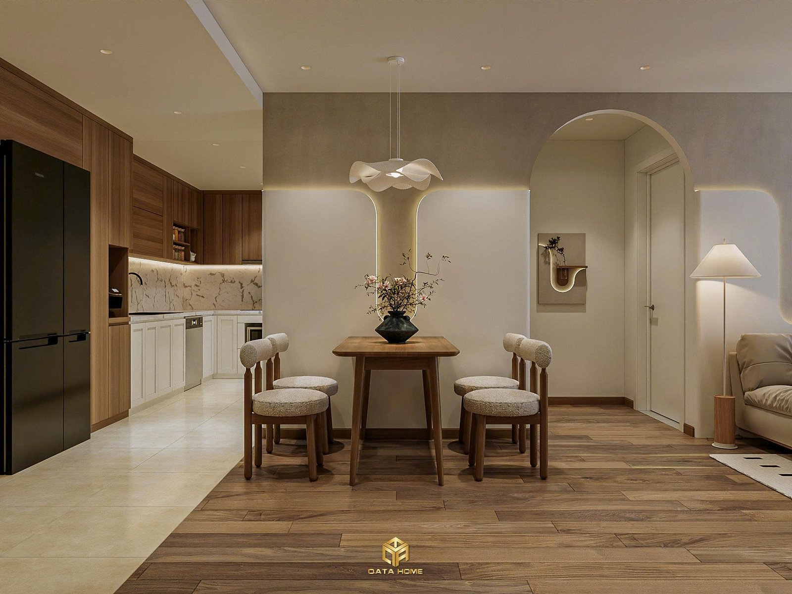Thiết kế nội thất phong cách Wabi Sabi Qata Home chính là câu chuyện về sự giao thoa hoàn hảo giữa thiên nhiên và đời sống hiện đại. Khi bước vào căn hộ chung cư này, bạn sẽ cảm nhận ngay hơi thở dịu dàng của gỗ tự nhiên, những đường cong uyển chuyển và ánh sáng len lỏi qua từng góc nhỏ. Qata Home – đơn vị thiết kế và thi công nội thất hàng đầu – đã khéo léo biến không gian chung cư thành tổ ấm đầy cảm xúc, nơi mỗi chi tiết đều kể một câu chuyện riêng.