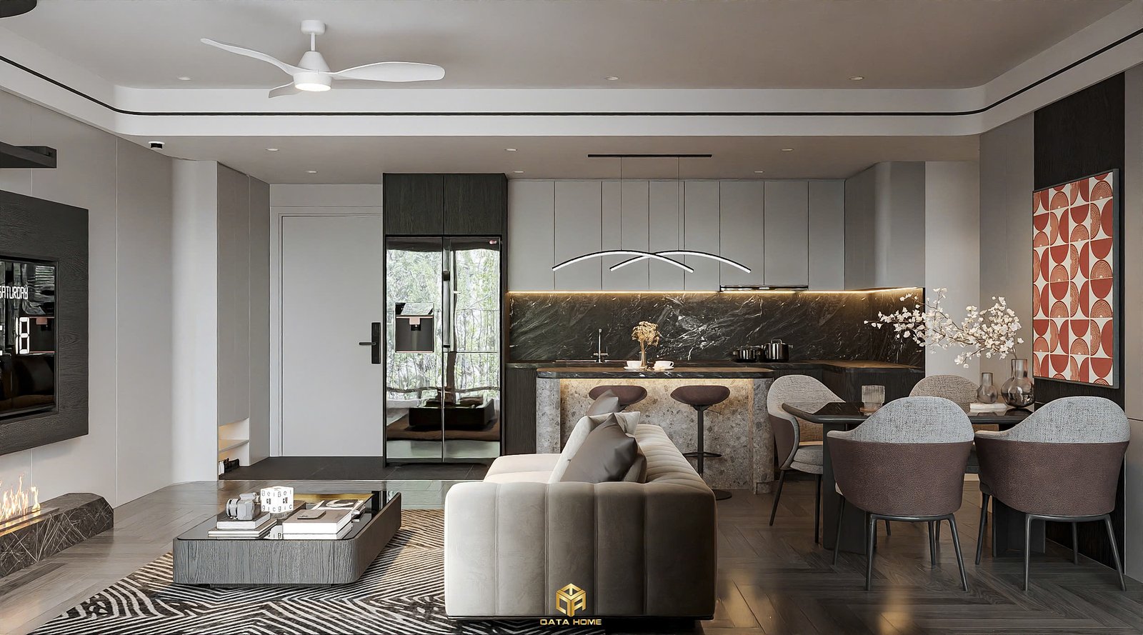 Tại dự án này, Qata Home đã kiến tạo nên một không gian sống đậm chất nghệ thuật, nơi các đường nét hình học gặp gỡ vật liệu cao cấp để tạo nên bản giao hưởng của sự tiện nghi.