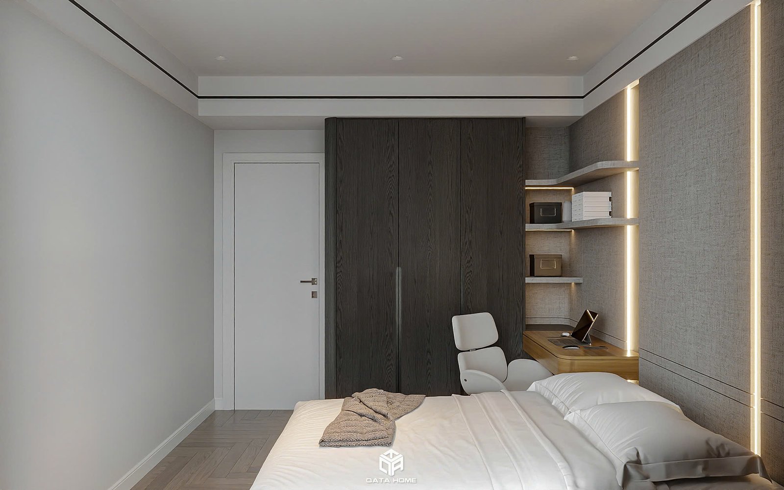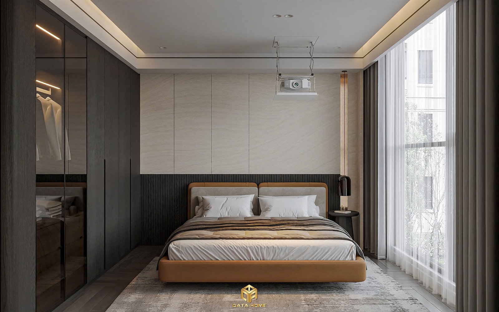Phòng ngủ là không gian cá nhân, do đó Qata Home chú trọng vào việc lựa chọn vật liệu mềm mại và ánh sáng dịu nhẹ.
