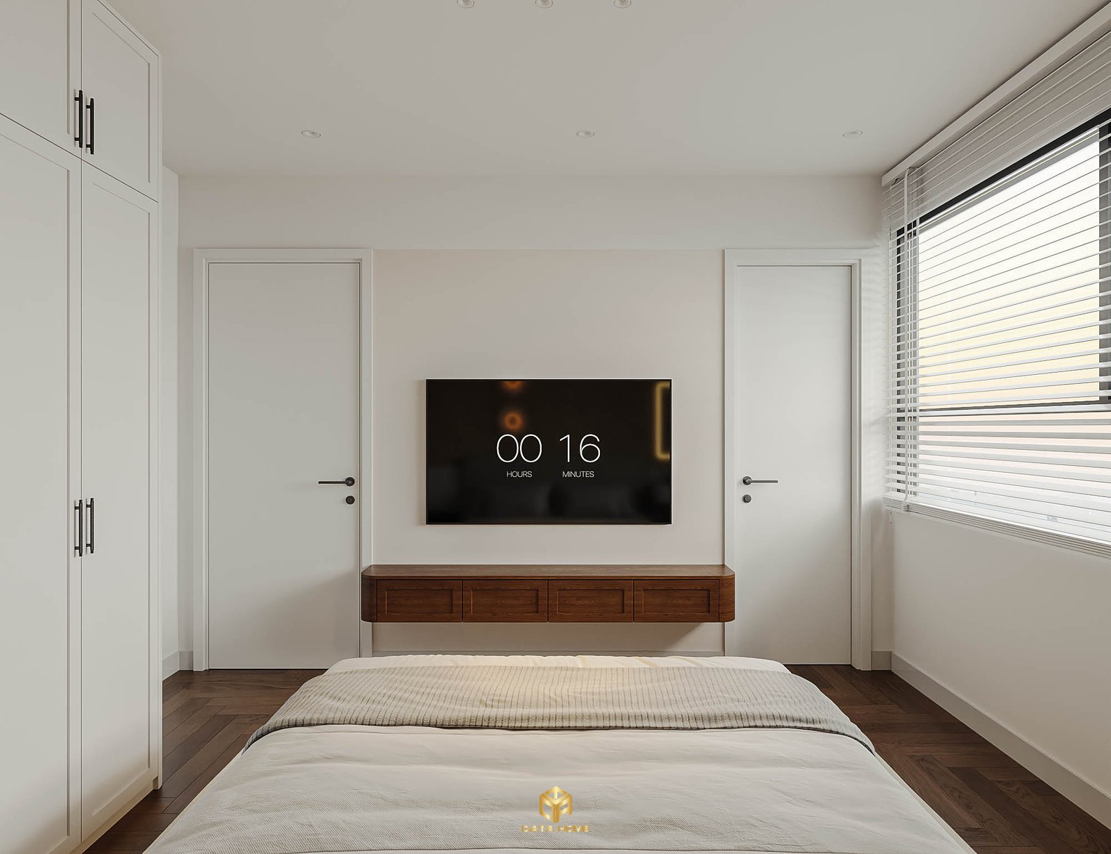 Tủ quần áo âm tường kịch trần thiết kế tối giản, tối ưu không gian lưu trữ và đảm bảo công năng tiện nghi cho phòng ngủ