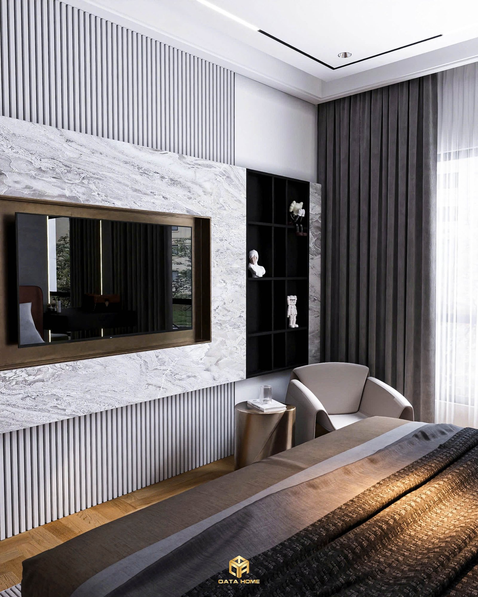 Phòng ngủ master là nơi thể hiện rõ nhất cá tính của gia chủ thông qua sự tư vấn thiết kế nội thất chuyên nghiệp từ Qata Home.