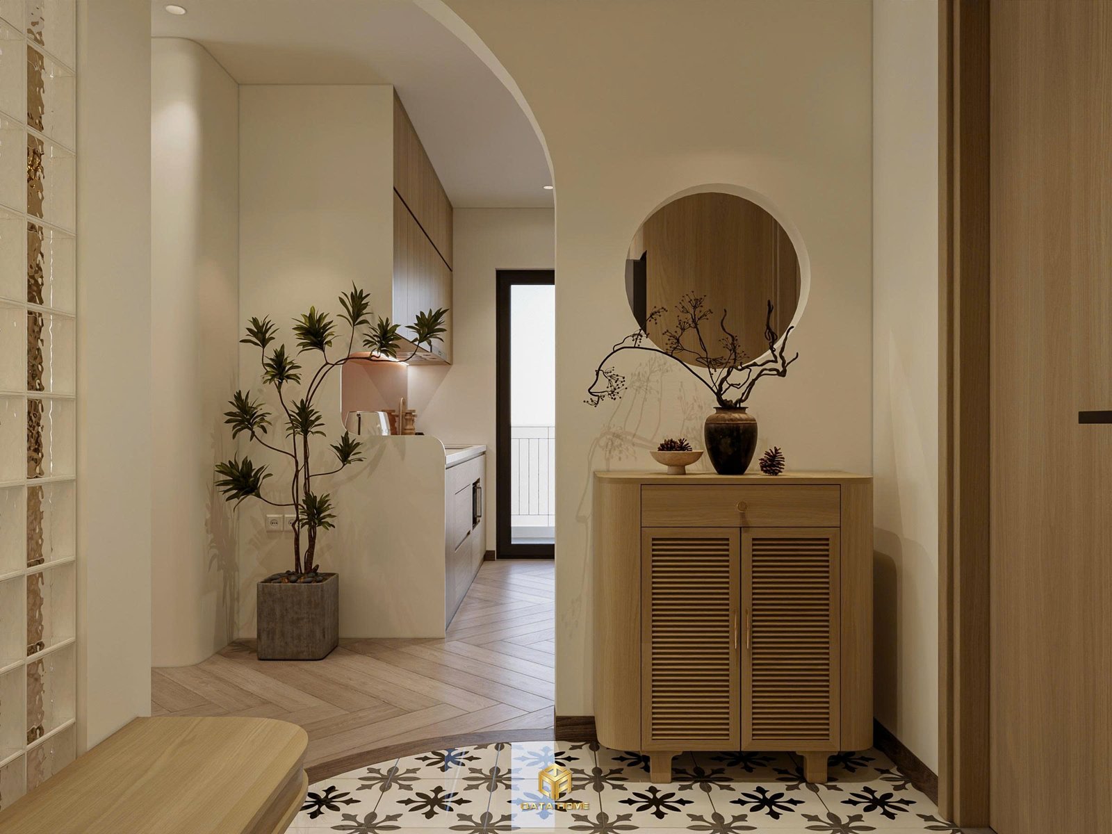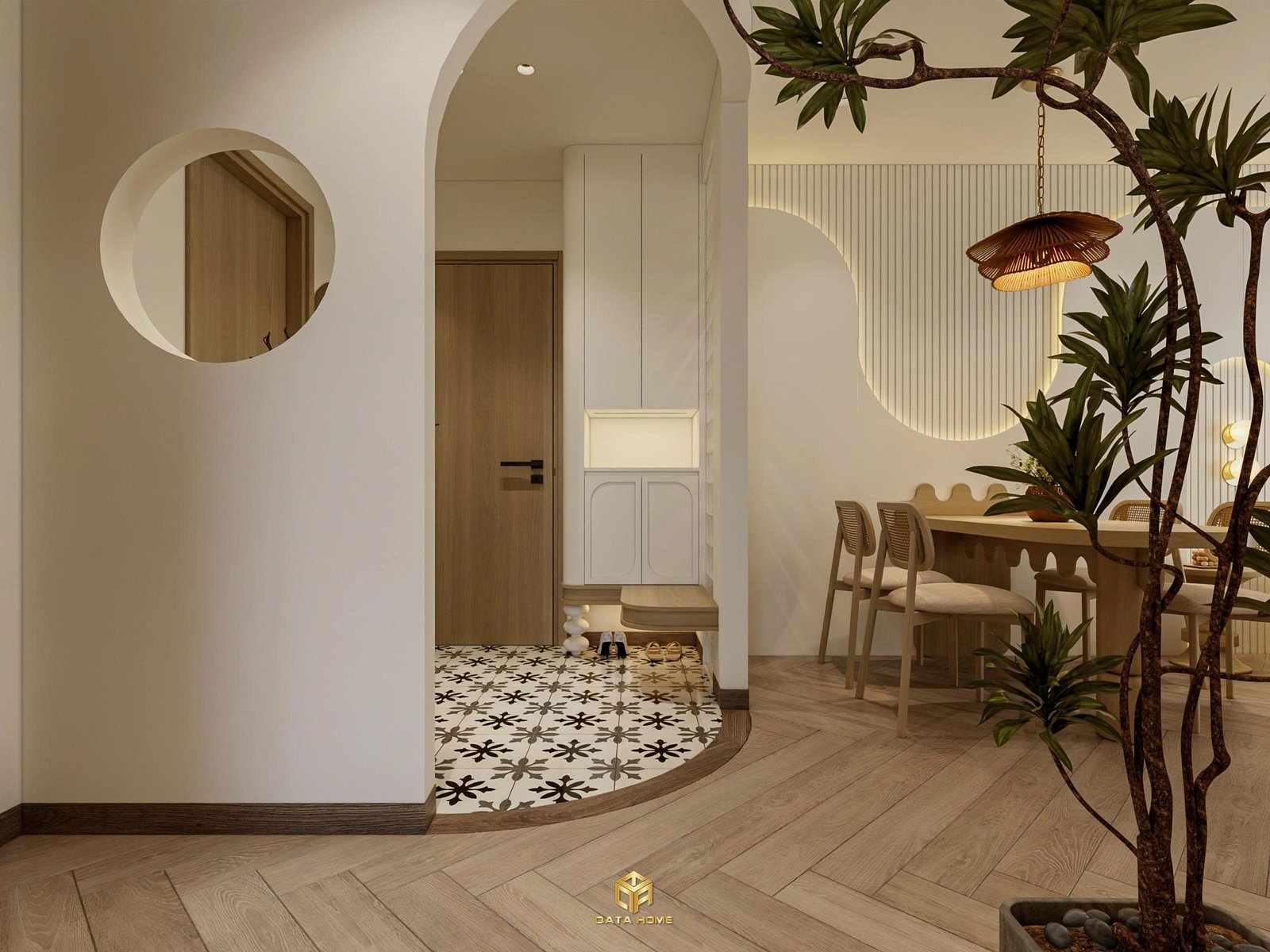 Từng chi tiết nhỏ trong căn hộ đều được tiết chế để giữ lại sự hài hòa cho tổng thể. Ánh sáng tự nhiên, vật liệu gỗ, bề mặt thô mộc và bảng màu trung tính tạo nên một không gian sống ấm áp nhưng vẫn hiện đại. Đây cũng chính là điều khiến phong cách Wabi Sabi ngày càng được yêu thích trong thiết kế căn hộ hiện nay.