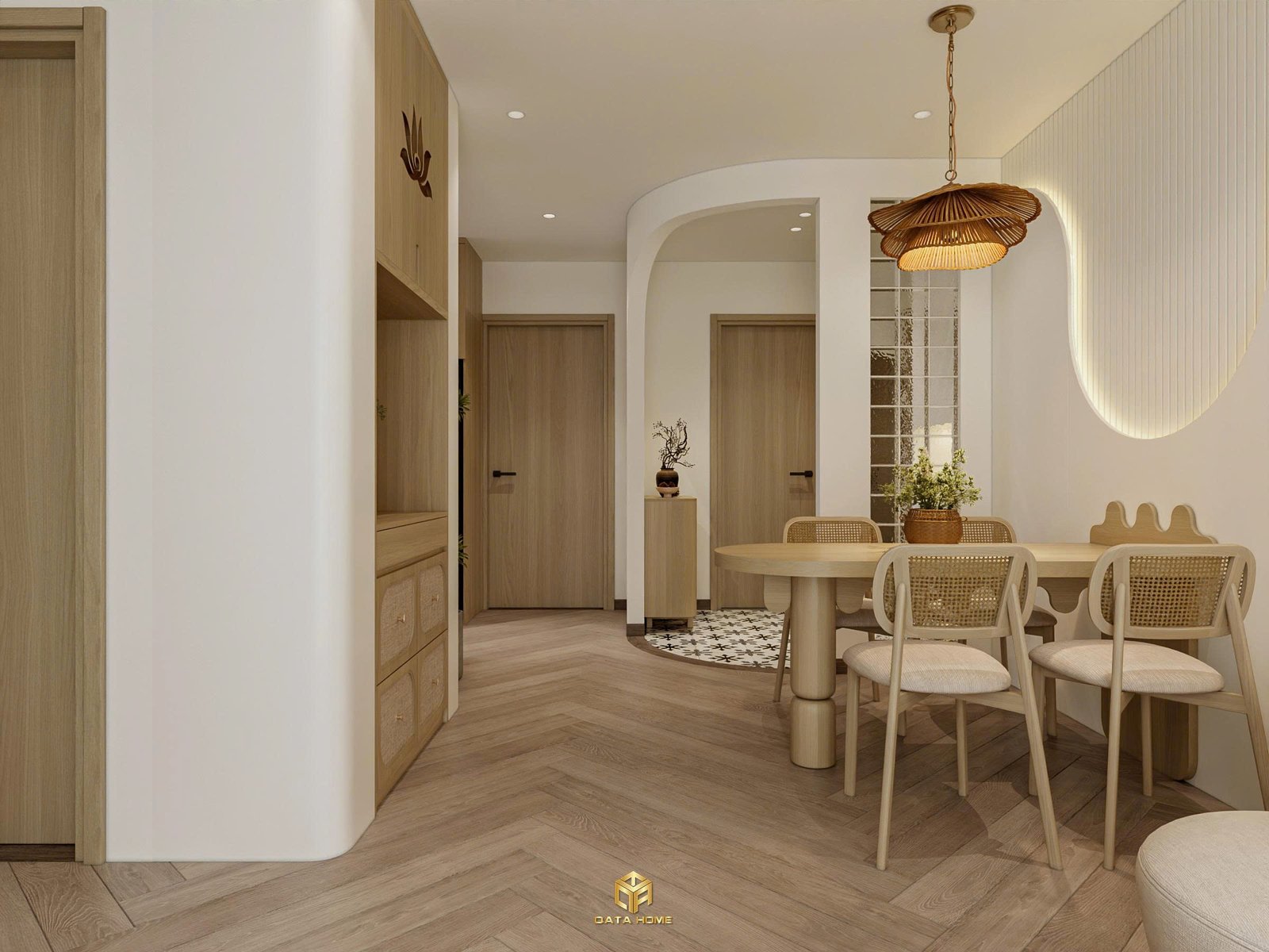 Thiết kế nội thất Wabi Sabi căn hộ The Canopy – Vinhomes Smart City mang đến một không gian sống ấm cúng, mềm mại và đầy cảm xúc. Không chạy theo sự cầu kỳ, phong cách Wabi Sabi hướng đến vẻ đẹp tự nhiên, tinh giản và bình yên trong từng chi tiết của căn hộ.