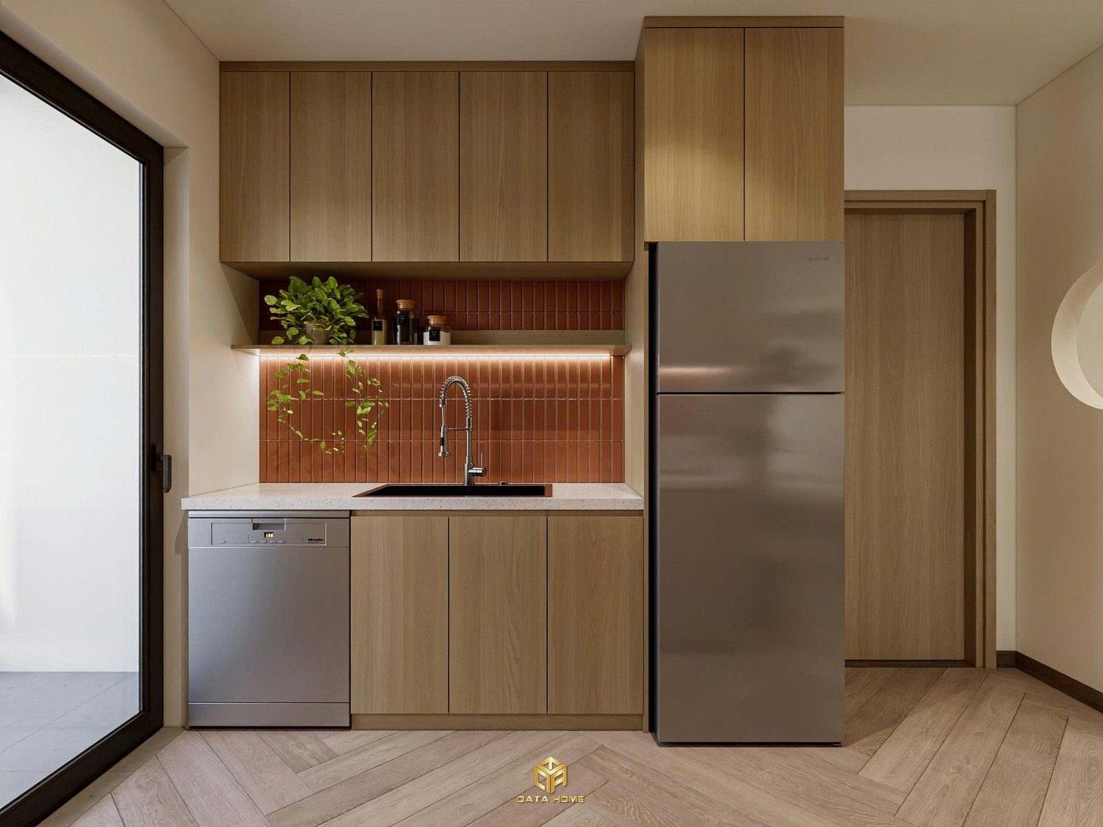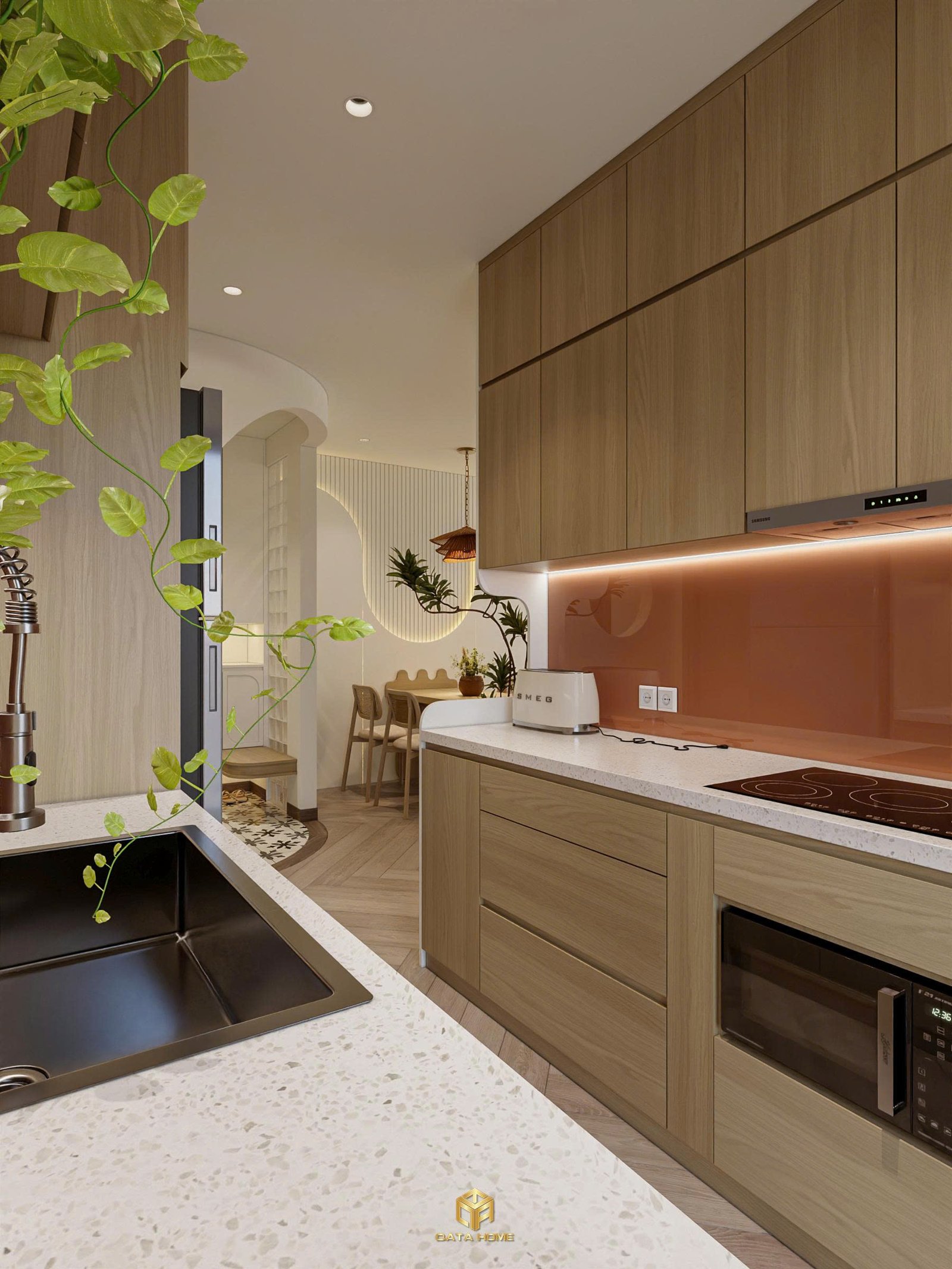 Trong tổng thể căn hộ, khu bếp không chỉ là nơi nấu nướng mà còn là không gian kết nối và chia sẻ những khoảnh khắc đời sống thường ngày.