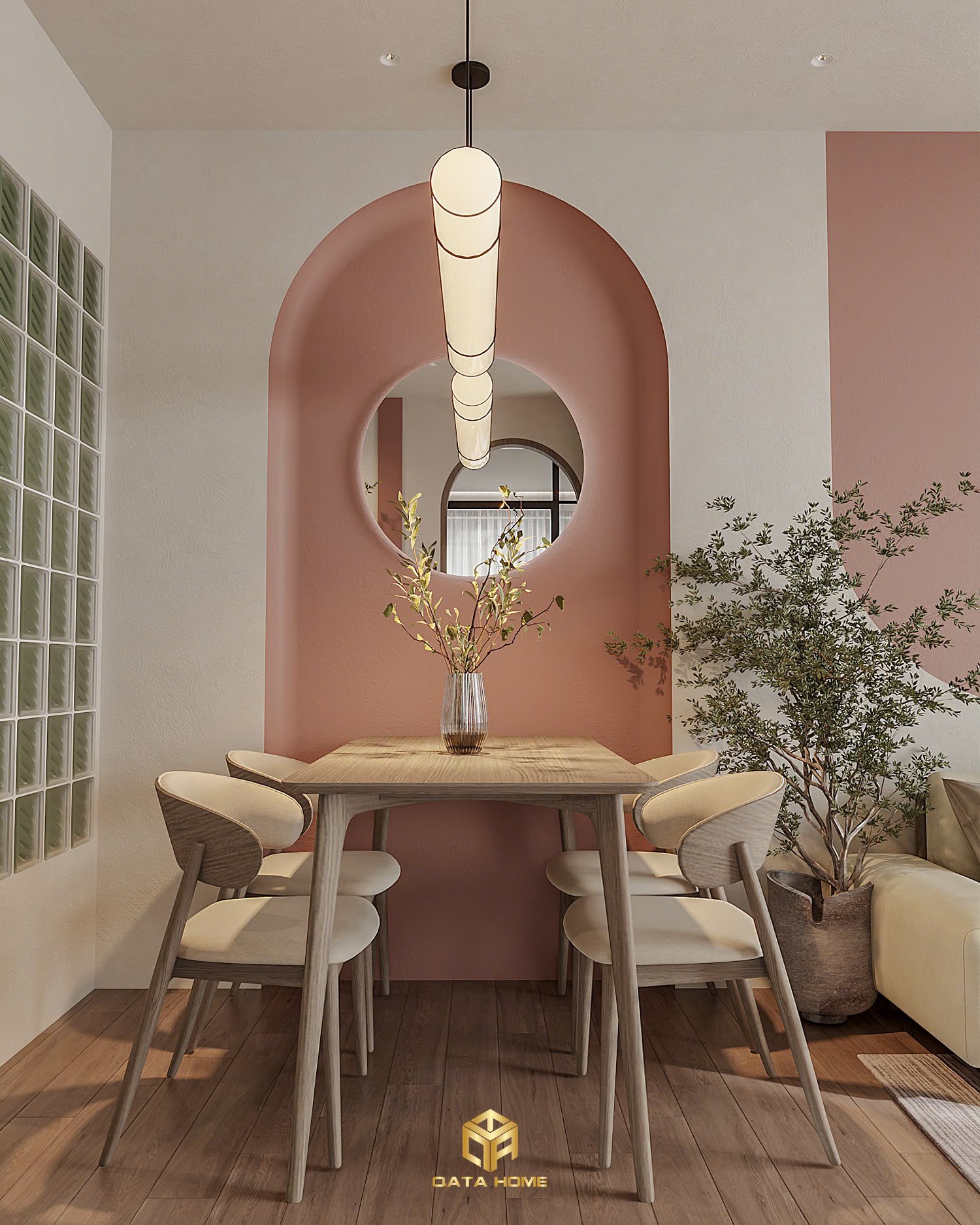 Gam màu chủ đạo là trắng kem, be, nâu gỗ và sắc đất nung, kết hợp cùng ánh sáng tự nhiên giúp không gian luôn nhẹ nhàng, thư thái.
